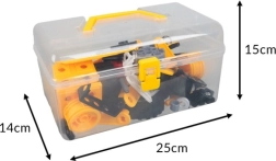 Dette byggesæt til små konstruktører bringer et rigt udvalg af interaktive dele, herunder hjul, tandhjul, skruer og værktøj, så børn kan samle forskellige rullende køretøjer og simple mekaniske modeller. Alt er overskueligt opbevaret i en solid opbevaringsboks med håndtag, hvilket gør sættet let at transportere og opbevare.