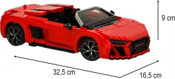 Dette detaljerede byggesæt bringer en realistisk model af AUDI R8 Spyder med gennemtænkte karrosserilinjer, hjul og cockpit. Takket være det høje antal dele skaber du en præcis model i målene 32,5 × 16,5 × 9 cm, som tager sig flot ud på hylden eller på kontoret.