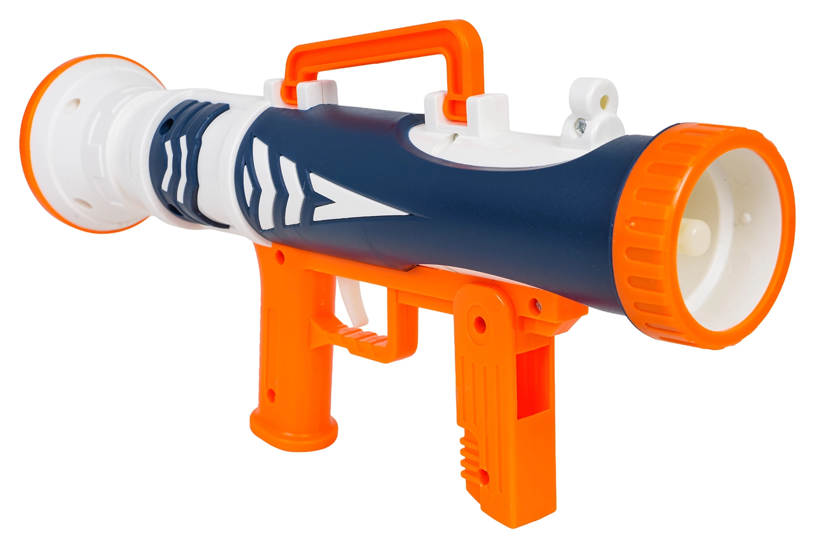 Denne store skumaffyrer giver masser af action uden bekymringer – de bløde skumskud er skånsomme og velegnede til børn fra 6 år. Betjeningen er meget enkel: indsæt projektil i løbet og tryk på aftrækkeren. Takket være det behagelige bæregreb og den robuste konstruktion er den ideel til have, legeplads og indendørs præcisionslege.