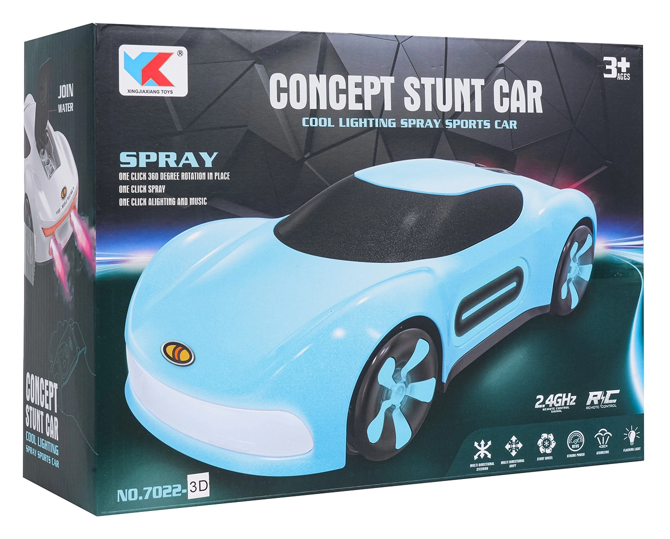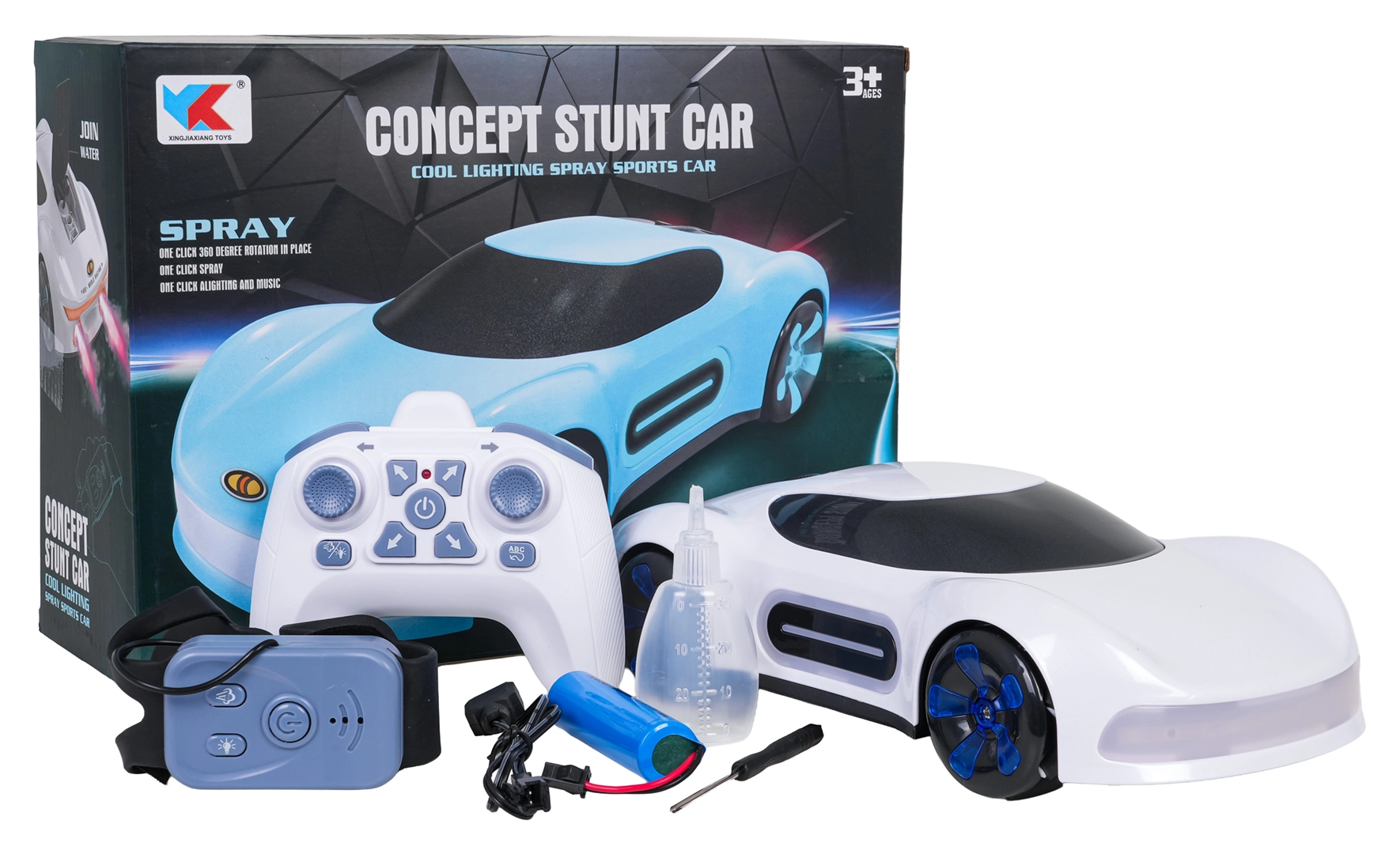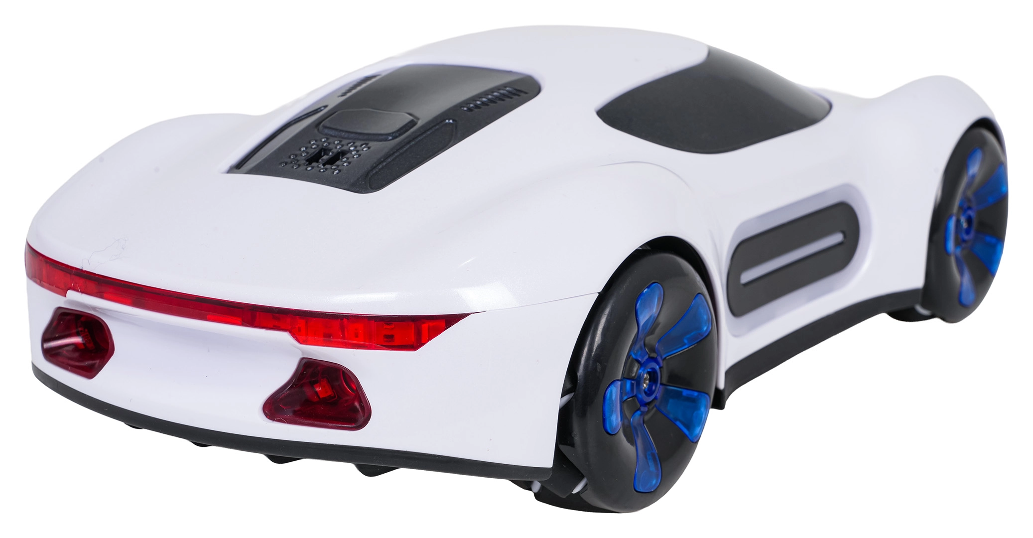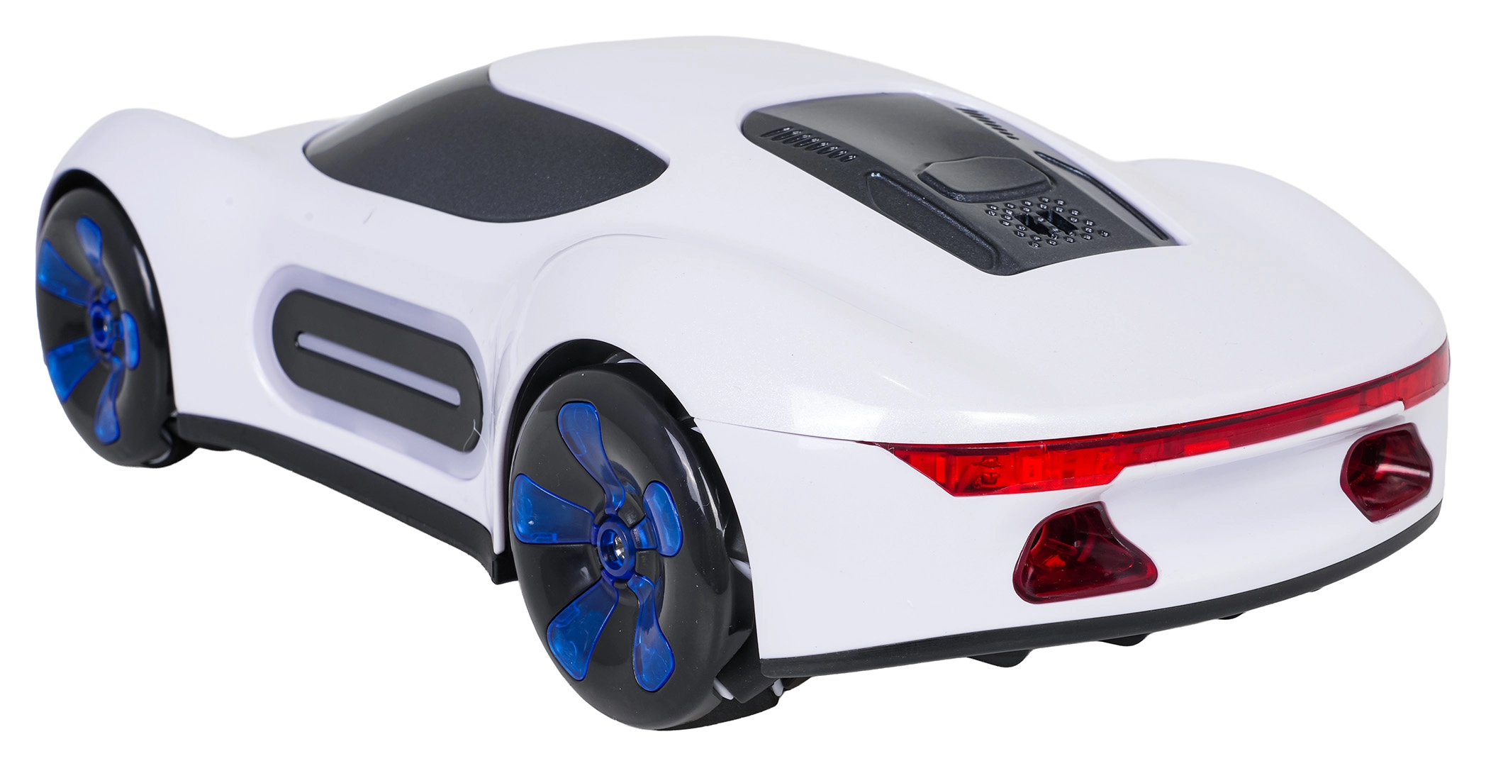Bilen kan styres med 2,4 GHz-fjernbetjening eller armbåndsur til gestestyring. Den kører frem/tilbage, drejer, bevæger sig sideværts, drifter og laver 360° rotationer. Den solide konstruktion i holdbare materialer er ideel til daglig leg.