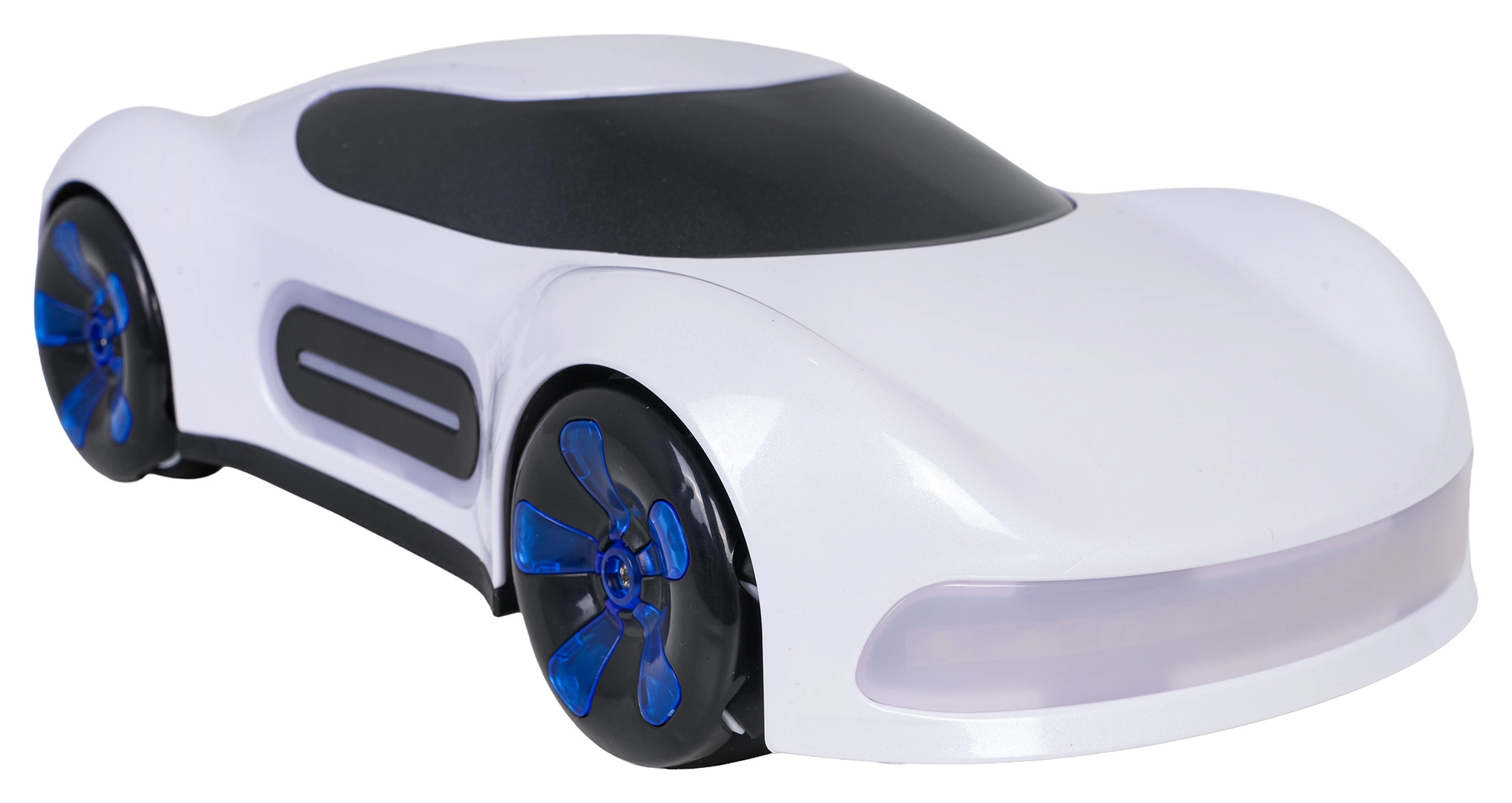 Denne elegante hvide model kombinerer et attraktivt perlemorslook med kraftige funktioner. Når vandtanken er fyldt, skaber den realistisk røg fra to steder, hvilket giver en showeffekt under kørslen. LED-lys foran, bagpå, på siderne og i hjulene sikrer et flot lysshow selv i mørke.