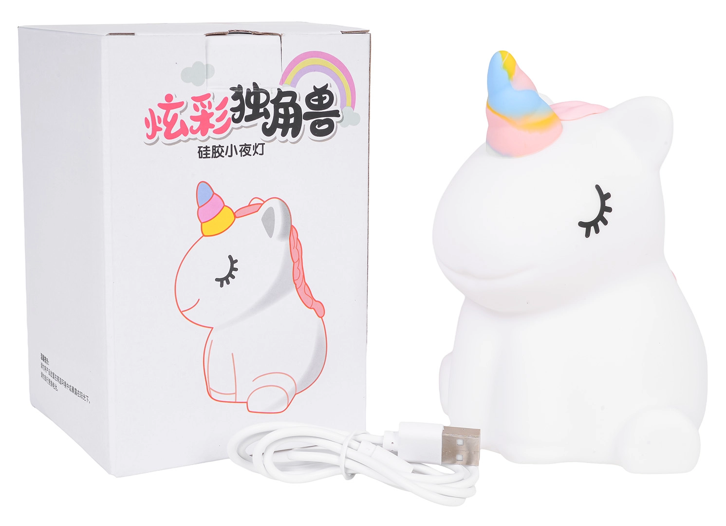 Denne søde enhjørningelampe er den ideelle sovemakker for børn fra 3 år. Den bløde BPA‑fri silikonekrop er behagelig og sikker, og lyset er varmt og forstyrrer ikke søvnen. De kompakte mål gør den perfekt til natbord eller hylde.