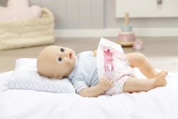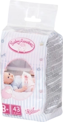 At lege med en våd numse er slet ingen sjov. Heldigvis har Baby Annabell et pakke med fem bleer klar. De smukke bleer er dekoreret med motiver af søde får. Det er blot at fjerne den klæbende strimmel, tage den gamle ble af, tage den nye på, og Baby Annabell er klar til at lege igen.