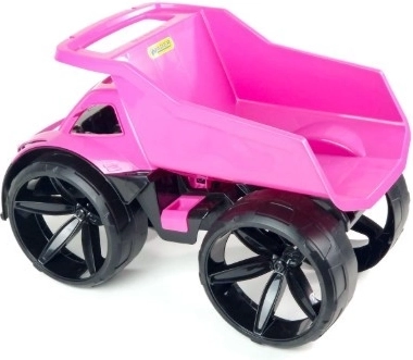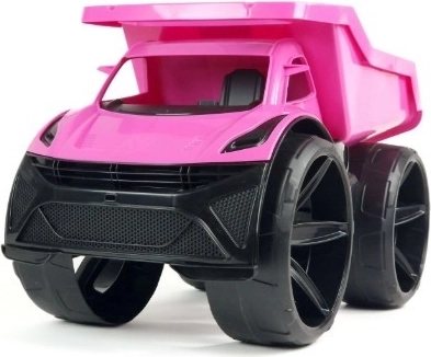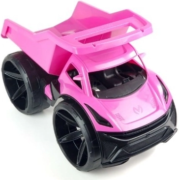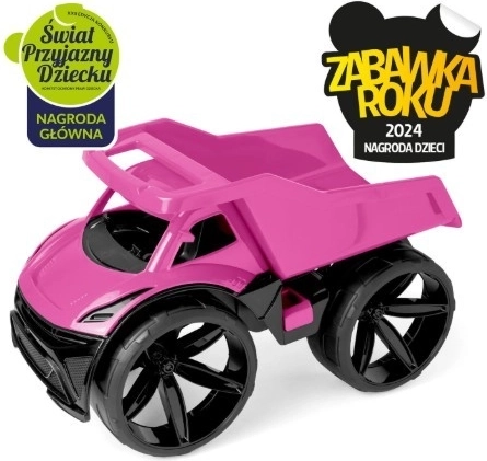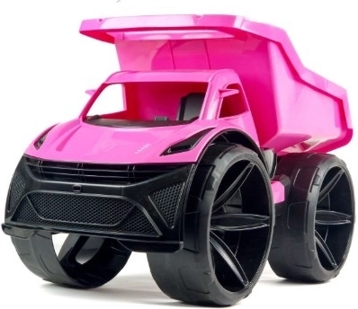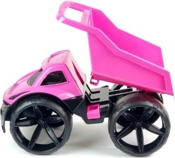Den pink tippevogn MAXIMUS kombinerer et attraktivt udseende med gennemtænkt funktionalitet. Takket være robust men let plast er den nem at styre selv for mindre børn, mens den bevægelige ladkasse muliggør realistisk lastning og losning. Futuristiske linjer, en bred kofanger med honeycomb-gitter og skråt monterede “lygter” understreger legetøjets moderne karakter.