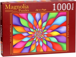 Nyd timevis af underholdning med det elegante motiv af regnbuefarvede kronblade. Puslespillet med 1000 brikker er ideelt til let øvede og erfarne puslespilsentusiaster og giver et farveharmonisk billede, der pynter både på bordet og i ramme.