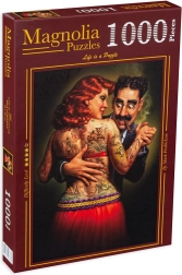 Forkæl dig selv med det elegante MAGNOLIA-puslespil med motivet LYDIA – den tatoverede dame. Med 1000 solide brikker og præcis trykkvalitet er samlingen flydende og resultatet imponerende. Det færdige billede måler cirka 48 × 68 cm, så det egner sig perfekt til indramning og udstilling.