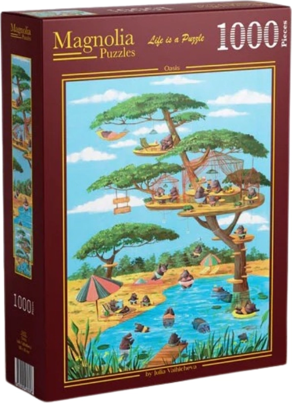 Oplev glæden ved at lægge puslespil med MAGNOLIA Oase på 1000 brikker. Takket være den optimale størrelse efter samling er det ideelt både til indramning og til at lægge igen. Oasemotivet giver en afslappende atmosfære og egner sig perfekt som gave til voksne og større børn.