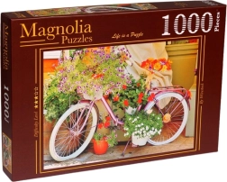 Oplev afslapning med et smukt motiv af en vintagecykel pyntet med blomster. Dette kvalitets‑puslespil med 1000 brikker giver en behagelig udfordring, fine detaljer og en færdig størrelse på ca. 68 × 48 cm, ideel til indramning.