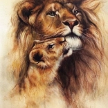 - Realistisk motiv af løve og unge for et imponerende visuelt resultat