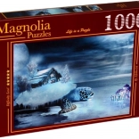 Oplev glæden ved at lægge puslespil med motiv af et roligt hus og en skildpadde. Dette puslespil med 1000 brikker tilbyder en behagelig udfordring for både begyndere og øvede. Når det er lagt, danner det et smukt billede på cirka 68 × 48 cm, som du kan indramme og bruge som dekoration i hjemmet.