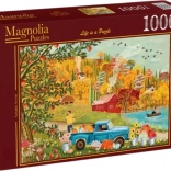 Oplev magien i efterårets farver med et puslespil, der glæder både begyndere og erfarne puslespilsentusiaster. Takket være kvalitetsprint og solide brikker er lægningen flydende, og det færdige billede fremstår levende og elegant.