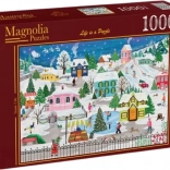 Oplev vinterstemningens magi med puslespillet Snedækket by. Takket være 1000 præcist udskårne brikker og detaljeret tryk er lægningen glidende og underholdende. Det færdige billede i størrelsen 68 × 48 cm egner sig perfekt til indramning.