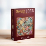 Leder du efter en gave til en kreativ sjæl? Puslespil mandala vil glæde enhver, der elsker rolige stunder, farverige mønstre og designmotiver. Det kvadratiske format er let at indramme og bliver en original dekoration i hjemmet.