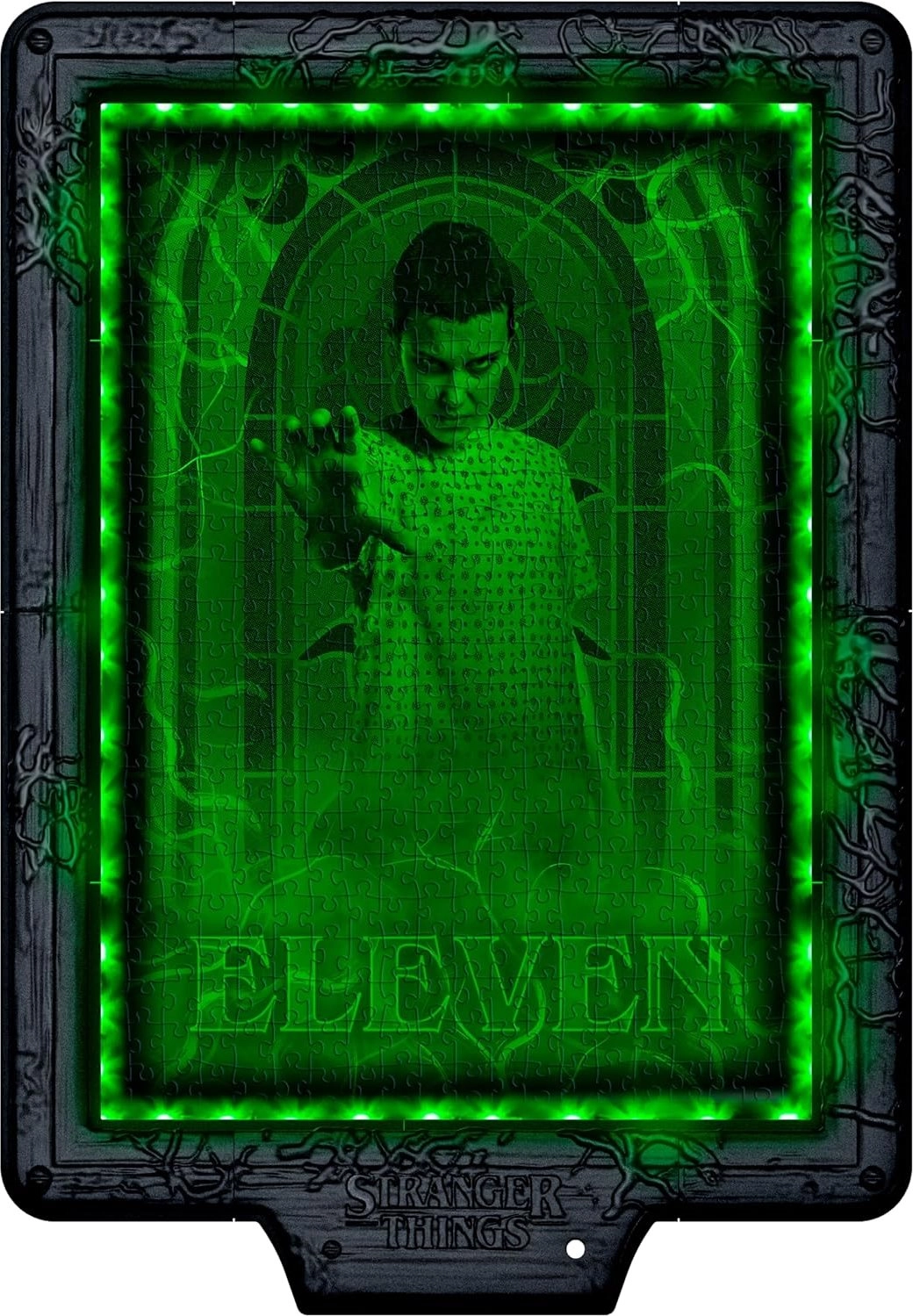 Træd ind i den mørke atmosfære af STRANGER THINGS med et lysende, metamorfisk puslespil, der ændrer sig efter RGB LED-lys. Puslespillet med 520 brikker afslører forskellige motiver, når lysets farve skifter, og giver en unik oplevelse fra Upside Down.