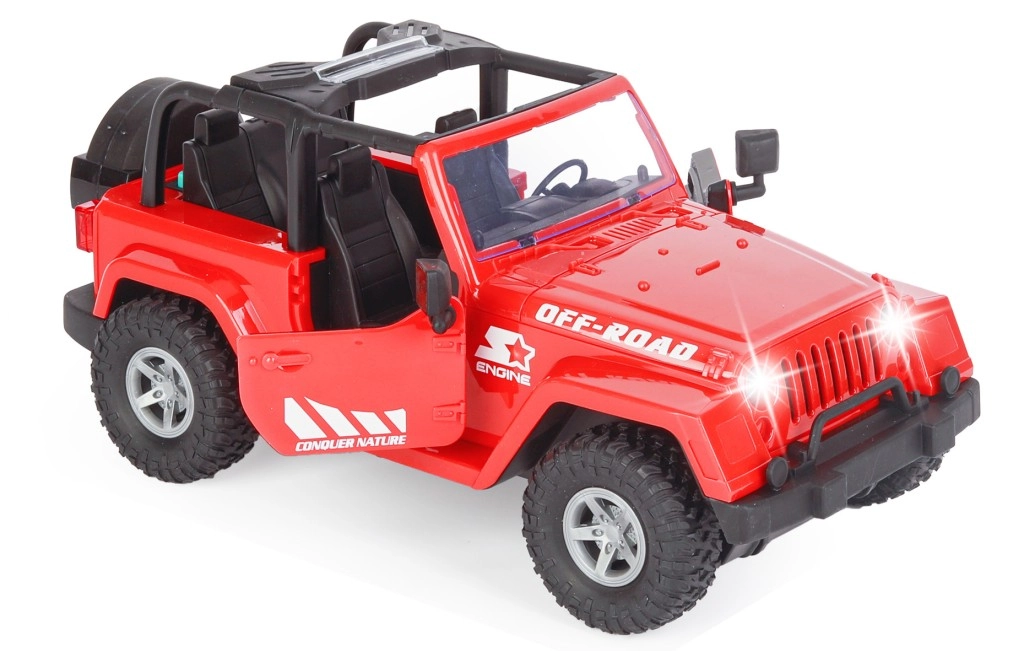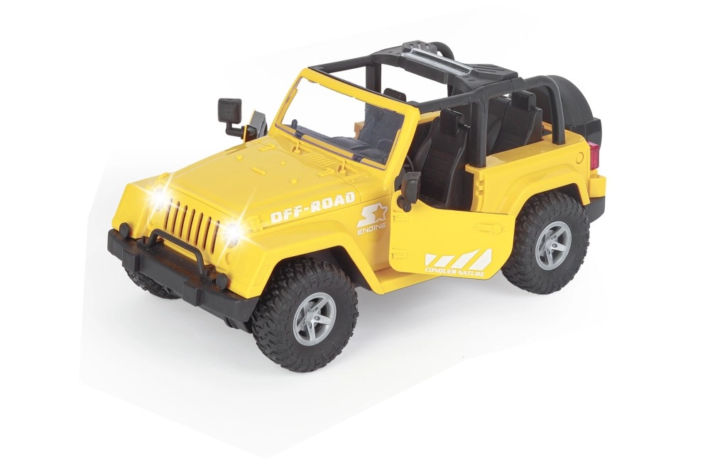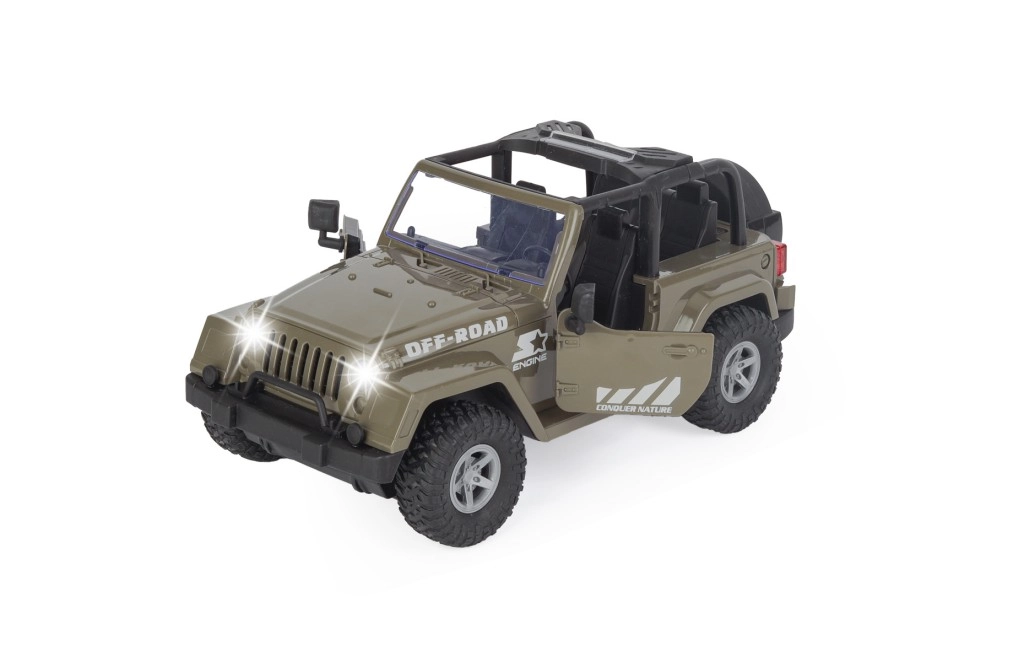 Nyd en ordentlig køretur med en jeep, der imponerer ved første øjekast. I skala 1:10 tilbyder den realistiske proportioner, detaljeret udførelse og holdbar konstruktion, velegnet til leg både inde og ude. Integrerede lys- og lydeffekter forstærker stemningen og forvandler hver tur til et ægte eventyr.