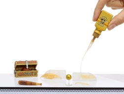 Samle, og lad derefter miniaturen hærde i 5 minutter i direkte sollys eller under UV 365 nm. Du får et solidt stykke klar til leg eller udstilling.