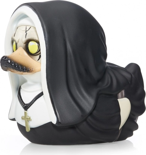 Nonnes mørke look med markante gule øjne gør gummikyllingen til et iøjnefaldende stykke i en tematisk samling.