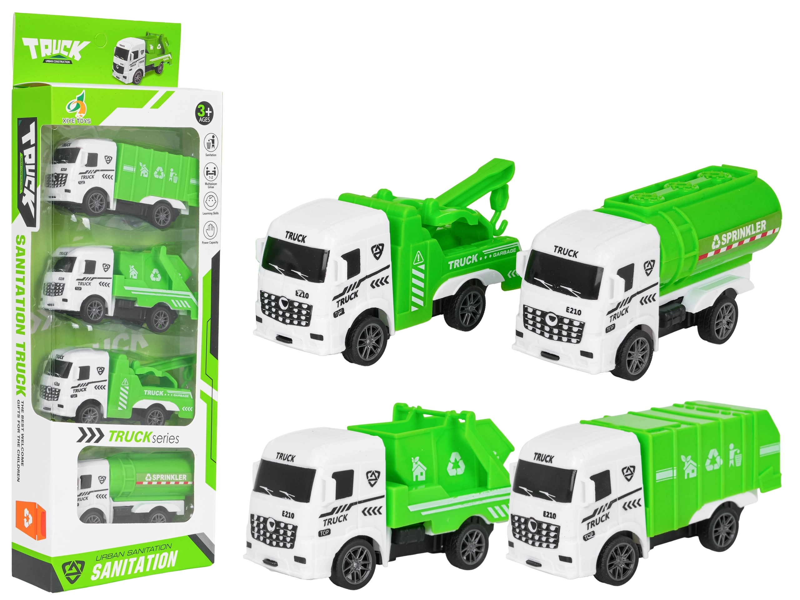 Hvert køretøj byder på sin egen funktion: skraldevognen har åbent låg, tipvognen tipper ladet, autohjælpen har en bevægelig arm, og tankvogn/sprinkler simulerer vedligeholdelse af gaderne. Sættet udvikler finmotorik, fantasi og historiefortælling – ideelt til små fans af bymaskiner.