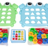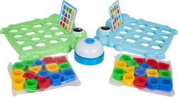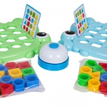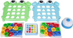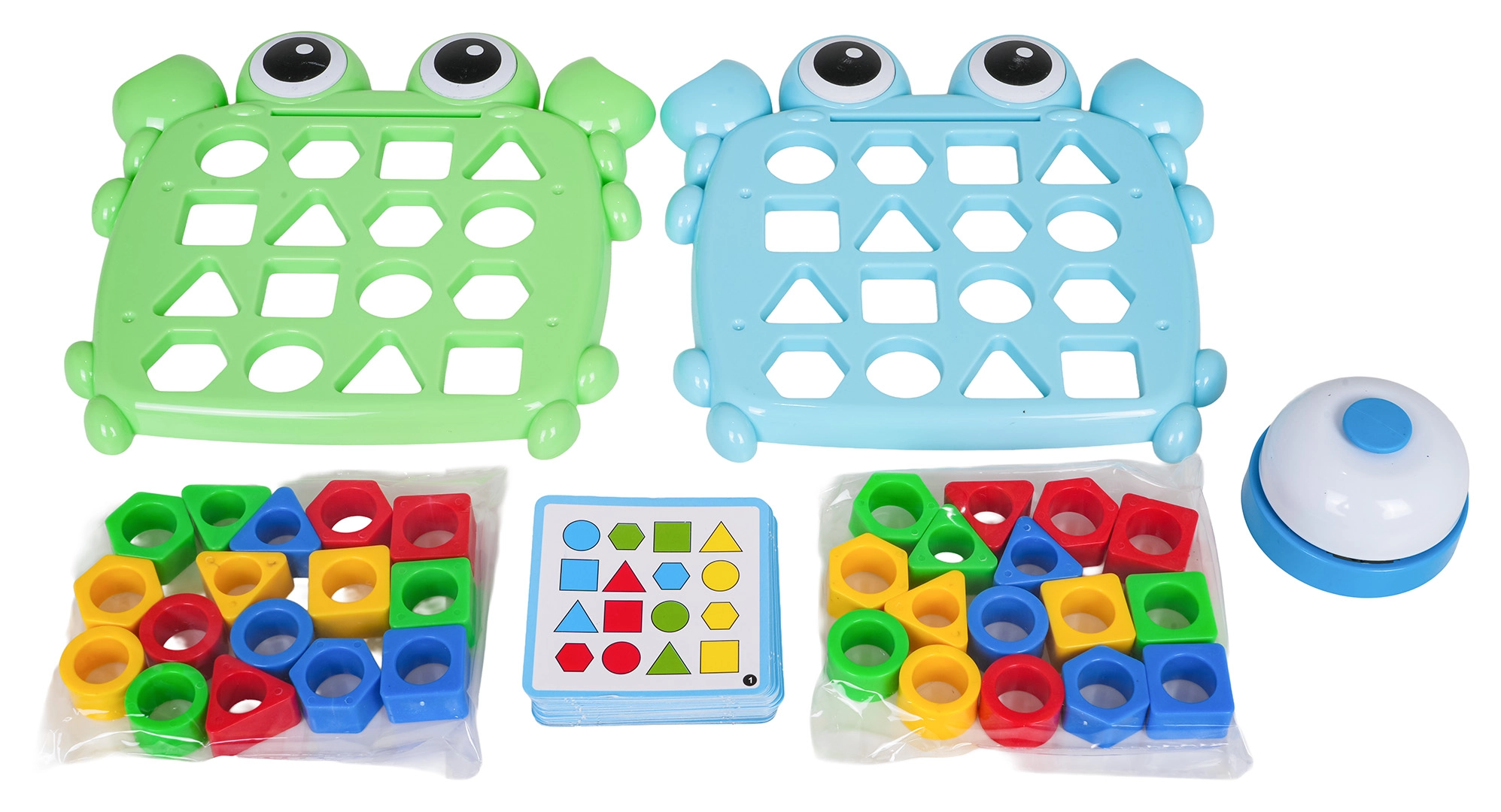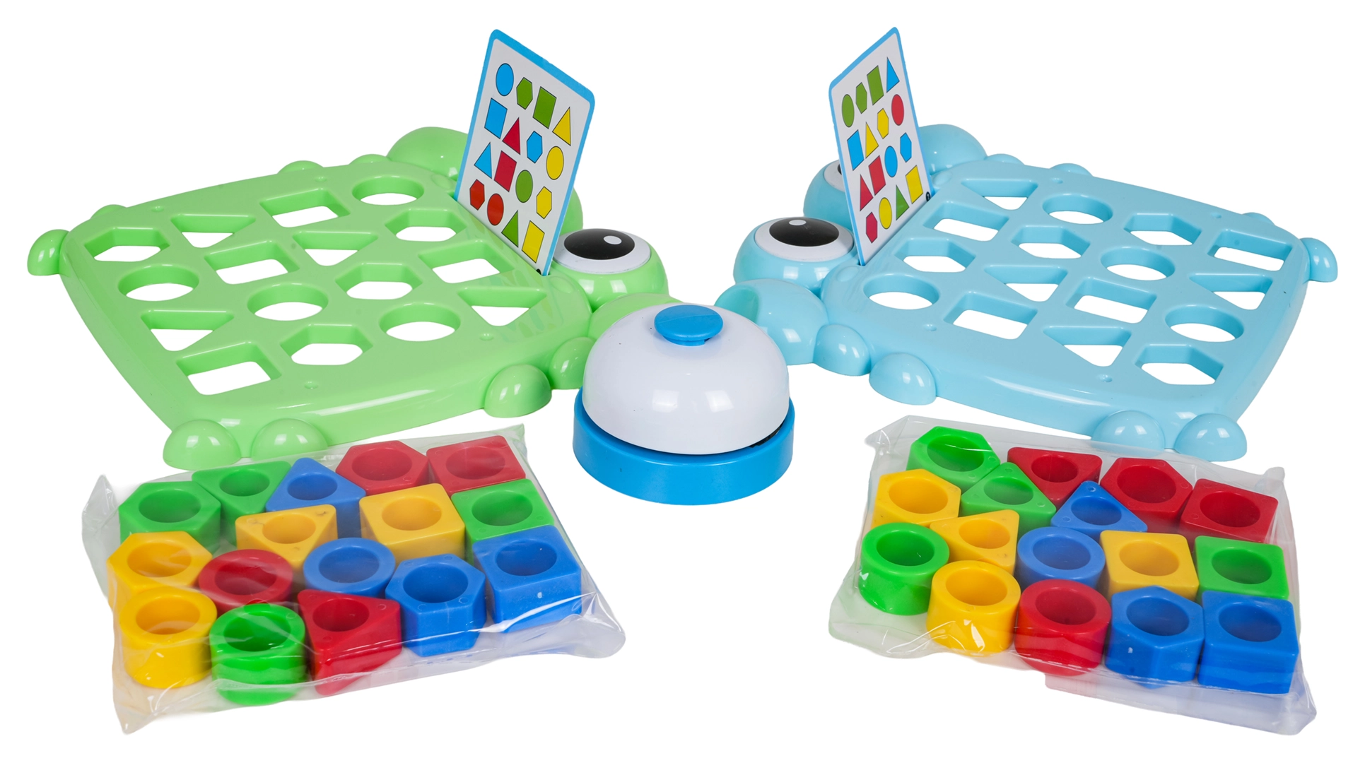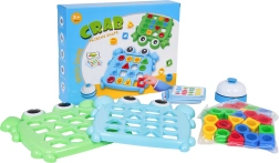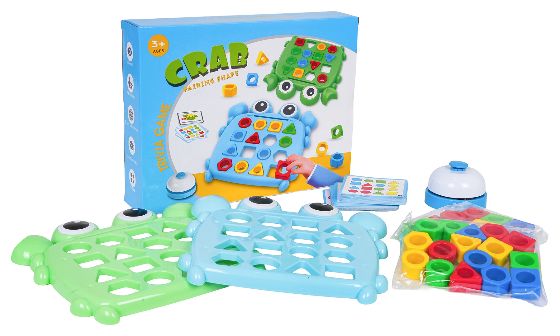 Dette fængende børnespil med krabber forener læring og konkurrence. Børn vælger et mønsterkort, indsætter farvede former i hullerne på pladen og træner logik, opmærksomhed og hånd-øje-koordination. Ved spil for to afgør hastigheden – den, der først fuldender mønsteret og trykker på klokken, vinder kortet.