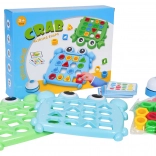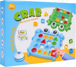 Sjovt færdighedsspil for børn fra 3 år, der udvikler finmotorik, genkendelse af former og farver samt hurtige beslutninger. To krabbe-spilleplader, mønsterkort og en klokke gør læring til en konkurrence – spil solo eller to sammen og læg mønsteret hurtigere end modspilleren.
