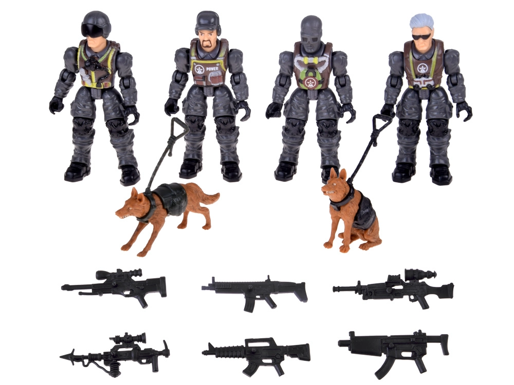 Dette 12-delte sæt er ideelt til børn, der elsker action og eventyr. Byg din egen specialenhed, tag på redningsmissioner, og træn med firbenede makkere. Bevægelige lemmer og masser af tilbehør giver timevis af sjov og realistisk leg.