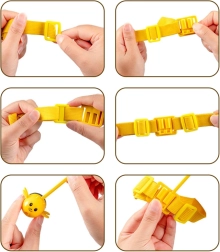 Den elastiske rem med pind og magnetisk bi kan bæres på hovedet eller holdes i hånden. Blomsterbasen og skålene holder spillet overskueligt og hurtigt.