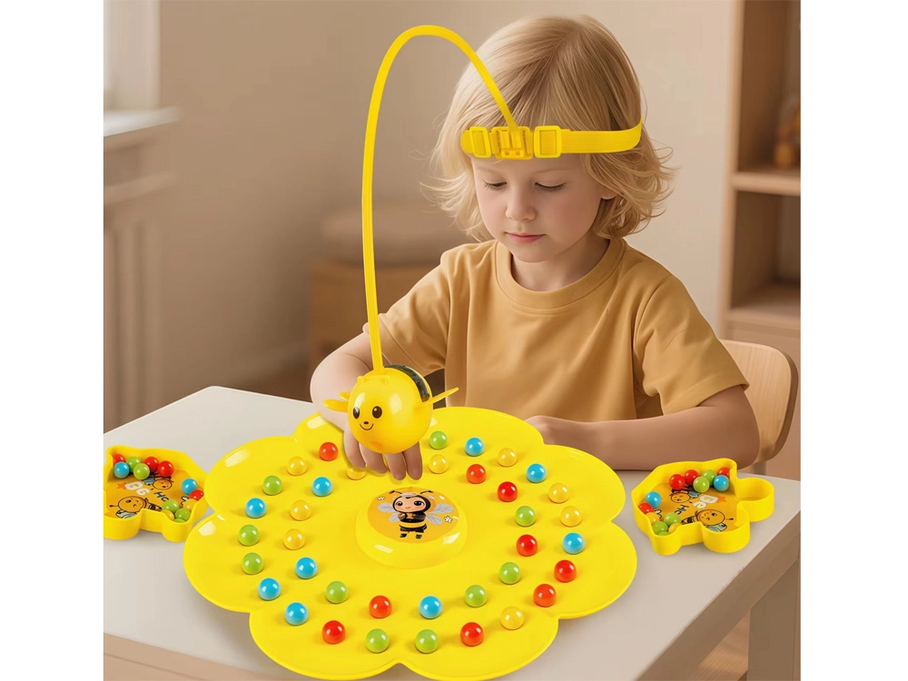 Tag det elastiske bånd med pinden på, fastgør den magnetiske bi, spred kuglerne ud på blomsterbasen, og på signalet går jagten i gang! Spillerne samler kugler i deres skåle med bien – enten i vilkårlige farver eller kun i den farve, de har valgt. Vinderen er den, der har flest, eller den der først samler “sine” farver.