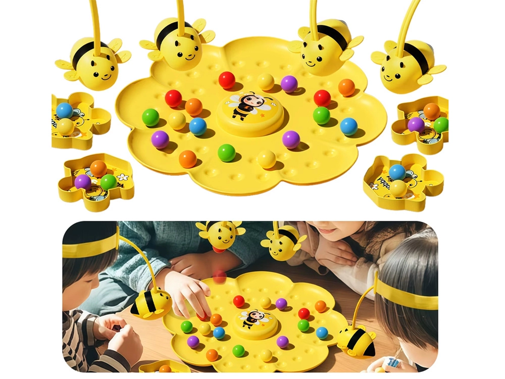 At fange magnetiske kugler i skåle med “bien” træner finmotorik, øje–hånd-koordination og tålmodighed. Perfekt til førskolebørn.