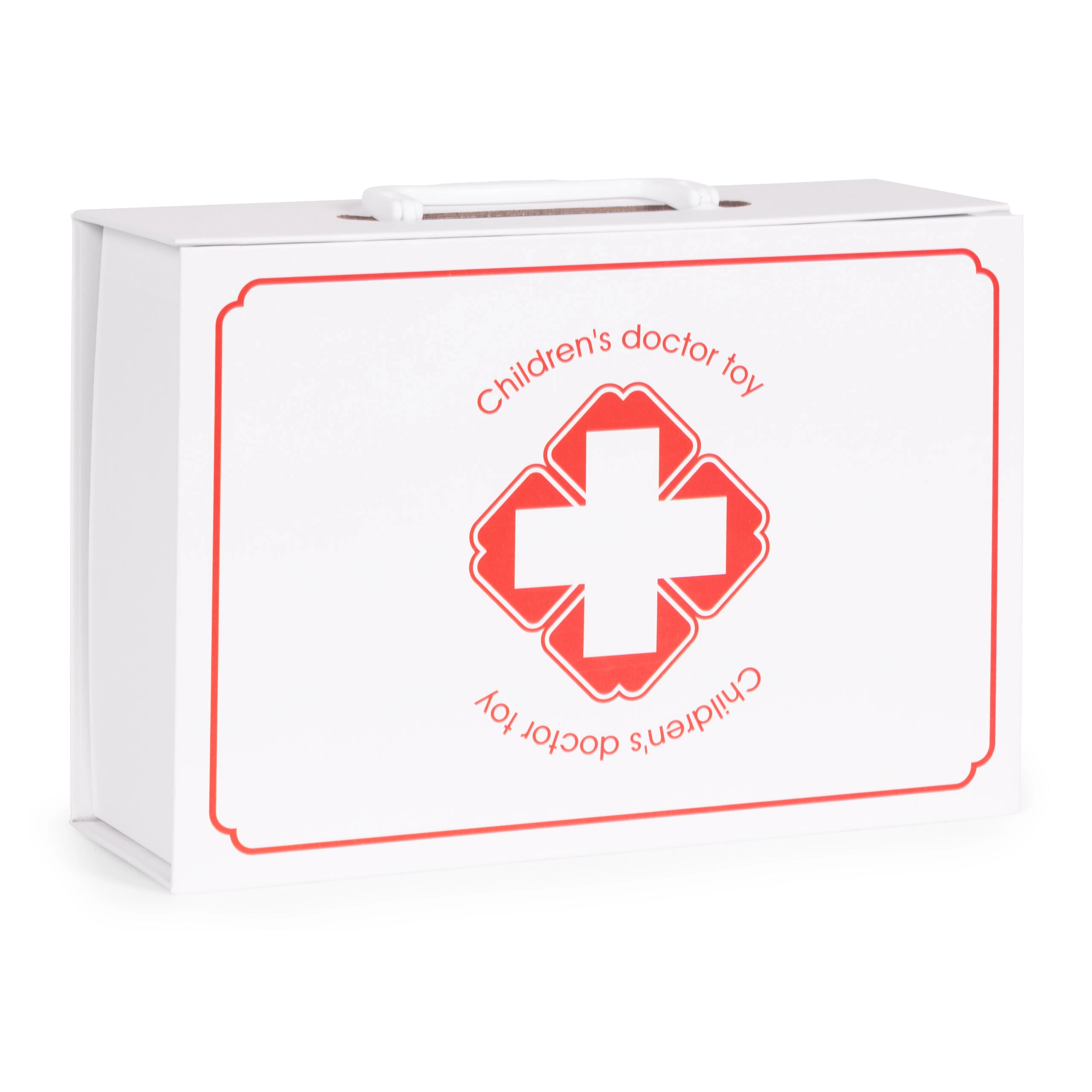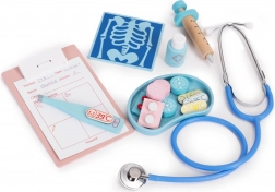 Det lille lægesæt i kuffert rummer alt til små læger og tandlæger: stetoskop, termometer, sprøjte, forbinding samt tandlægespejl, kunstigt kæbesæt med udtagelige tænder og meget mere. Sættet er ideelt til leg derhjemme og i børnehaven og hjælper med at afdramatisere besøg hos læge eller tandlæge.