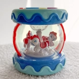 Oplev et alsidigt musiklegetøj, der både glæder og beroliger. WOOPIE 3-i-1 trommen fungerer som en tromme med en stor knap, en spilledåse med roterende heste og en natprojektor, der imiterer stjerner. Blinkende lys og behagelige melodier understøtter udvikling af hørelse, syn og koncentration.