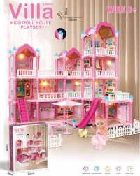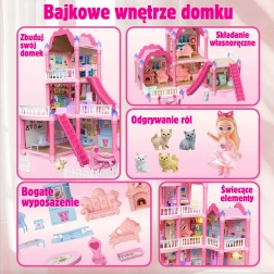 Opdag det smukke, treetagers dukkehus i rosa nuancer med terrasse, rutsjebane og rigt udstyr. Sættet indeholder 296 dele, inklusive stilfulde accessories og møbler, og der medfølger også en dukke. Nattelys skaber aftenstemning og giver legen ekstra magi. En ideel legetøj til at udvikle kreativitet, fantasi og finmotorik.