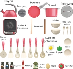 I pakken finder du alt, hvad der skal til for at “tilberede” en frokost – gryder med låg, en pande med spejlæg, en kande, tallerkener, skåle, bestik samt grøntsager og krydderier for at fuldende den kulinariske oplevelse. Takket være det rige tilbehør er legen inspirerende, sjov og engagerende.