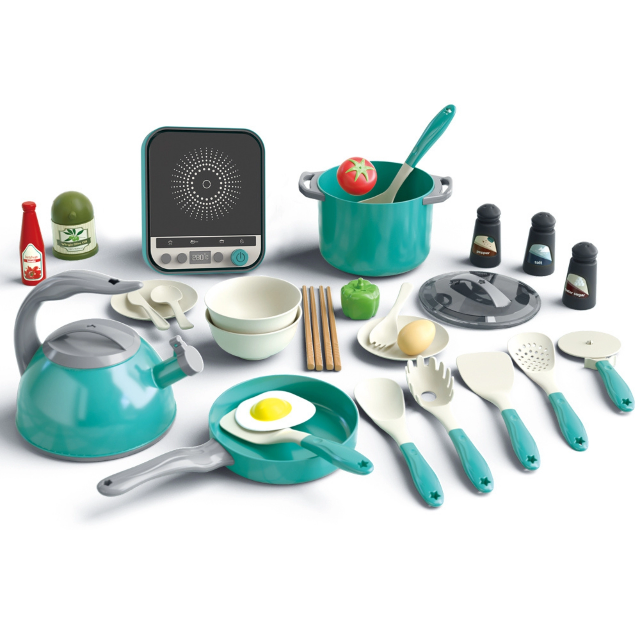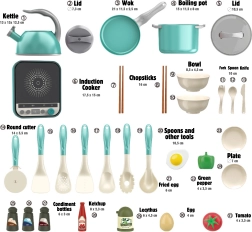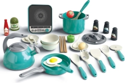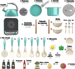 Et omfattende sæt til den lille kok fra WOOPIE bringer realistisk madlavningsleg med op til 30 dele. Børn vil nyde at efterligne voksne og udvikle deres kreativitet, fantasi og finmotorik. Inkluderer induktionskogeplade, gryder med låg, pande med spejlæg, kedel, bestik, grøntsager og krydderier – alt til sjov og realistisk rolleleg.