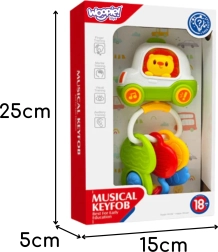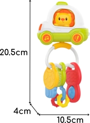 En farverig og interaktiv legetøj til de mindste, der kombinerer en lille bil med en sød løve, nøgler, rangle og et blødt bidelegetøj. Understøtter motorisk, sensorisk og kognitiv udvikling takket være glade melodier, realistiske billyde, blide lyseffekter og forskellige elementer at trykke på og dreje. Fremstillet af sikre, ikke‑toksiske materialer med aftagelig ophængsstrop til barnevogn eller autostol.