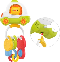 - interaktiv bil med løve, 3 nøgler i forskellige former, blødt bidelegetøj, ophængsstrop, gaveæske