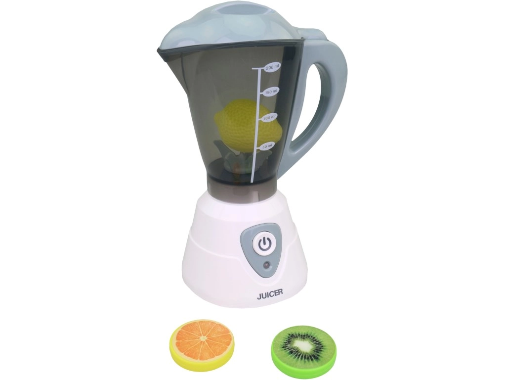 Den batteridrevne børnemixer med frugt er et fantastisk legetøj til ethvert lege-køkken derhjemme. Når der indsættes 2× AA-batterier, starter mixeren og afgiver en autentisk blenderlyd, som bringer rigtig madlavning tættere på børnene. Medfølgende elementer i frugtform giver mulighed for at “blande” deres yndlingsjuice.