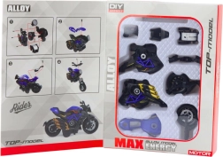 Oplev kreativ underholdning med byggesættet af en motorcykel i skala 1:14. Takket være kombinationen af metal- og plastkomponenter er modellen efter samling robust, detaljeret og visuelt attraktiv. Ideel til børn, der elsker teknik, og til alle, der kan lide at prøve DIY-projekter.