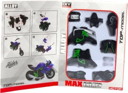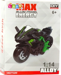 Byggesæt af metalmotorcykel i skala 1:14 vil glæde små konstruktører og motorentusiaster. Realistiske dele i grøn‑sort kombination skaber efter samling en imponerende model. Bygningen udvikler finmotorik, logisk tænkning, koncentration og giver glæde ved et egenhændigt skabt værk.