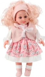 Den søde dukke SWEET ANGEL med en højde på 36 cm charmerer med fine træk, langt blond hår og et elegant outfit. Hun har en lyserød blomsterkjole med hvid krave, en lyserød ærmeløs vest, en matchende hårbøjle og strømper. Perfekt til rolleleg, udvikling af kreativitet og omsorg.