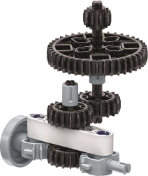Udforsk gearudveksling og overførsel af bevægelse. Det synlige tandhjulssystem lærer børn grundlæggende mekanik på en sjov måde.