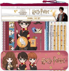 Dette komplette skole- og kreativsæt med licenserede HARRY POTTER-motiver leverer perfekt matchende redskaber i et praktisk etui med lynlås. Børn vil elske de chibi-inspirerede figurer af de populære helte, og forældre vil sætte pris på den robuste kvalitet og den overskuelige organisering af alt på ét sted.