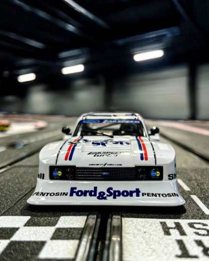 Den ikoniske racerbil Ford Capri Zakspeed i udgaven til Carrera Digital 124 racerbane leverer et realistisk look, detaljeret udførelse og pålidelig køredynamik. Takket være funktionsdygtige lygter, en kraftig magnet og kvalitetskontaktbørster klarer den hurtige passager og lange stints uden ydelsesudfald.