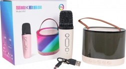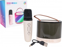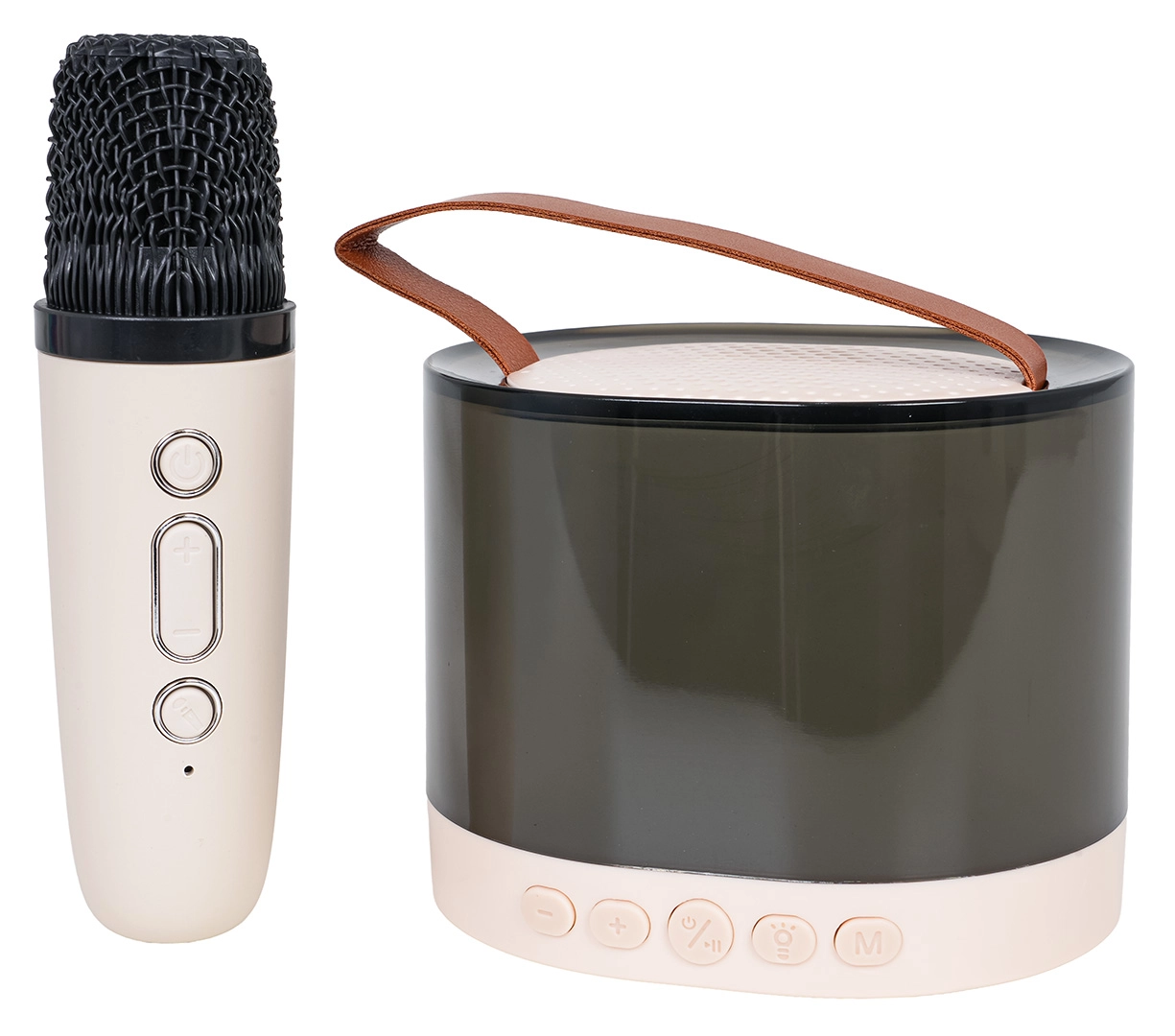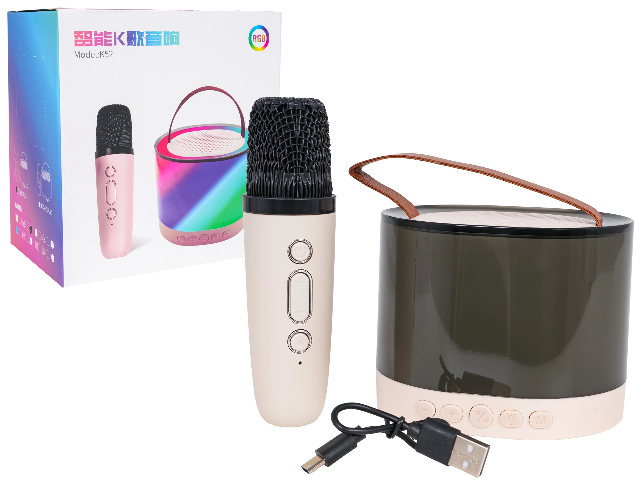 Dette bærbare karaokesæt kombinerer en kvalitets trådløs mikrofon og en stilfuld højttaler med transparent kabinet og læderhank for nem transport. Avanceret MP3-dekodning og DSP-støjreduktion sikrer markante basser, klare højder og kraftig, fyldig lyd. RGB LED-belysningen tilbyder 5 effekter, der synkroniseres med musikken – kort tryk skifter tilstand, hold i 2 s for at slukke lyset.
