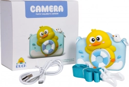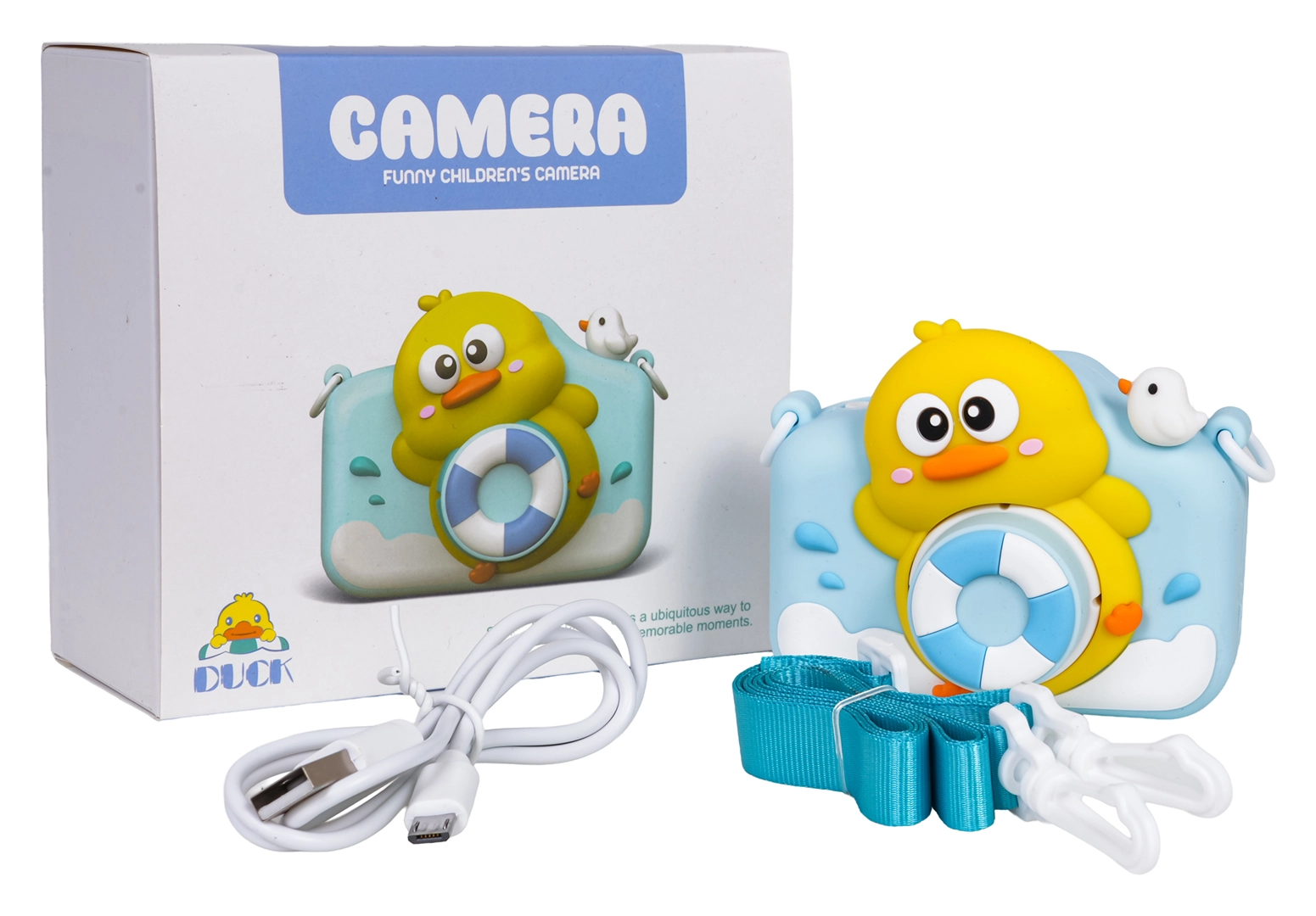 Det søde børnekamera med ællingemotiv giver børn både sjov og kreativitet. Det kan tage fotos og videoer, har et 1080p kamera, farveskærm (LCD), sjove filtre og rammer samt 5 spil i hukommelsen. Der medfølger et beskyttende gummietui, en snor til halsen og et USB-opladningskabel. Det indbyggede batteri 5 V / 1000 mAh sørger for masser af foto- og videominder.