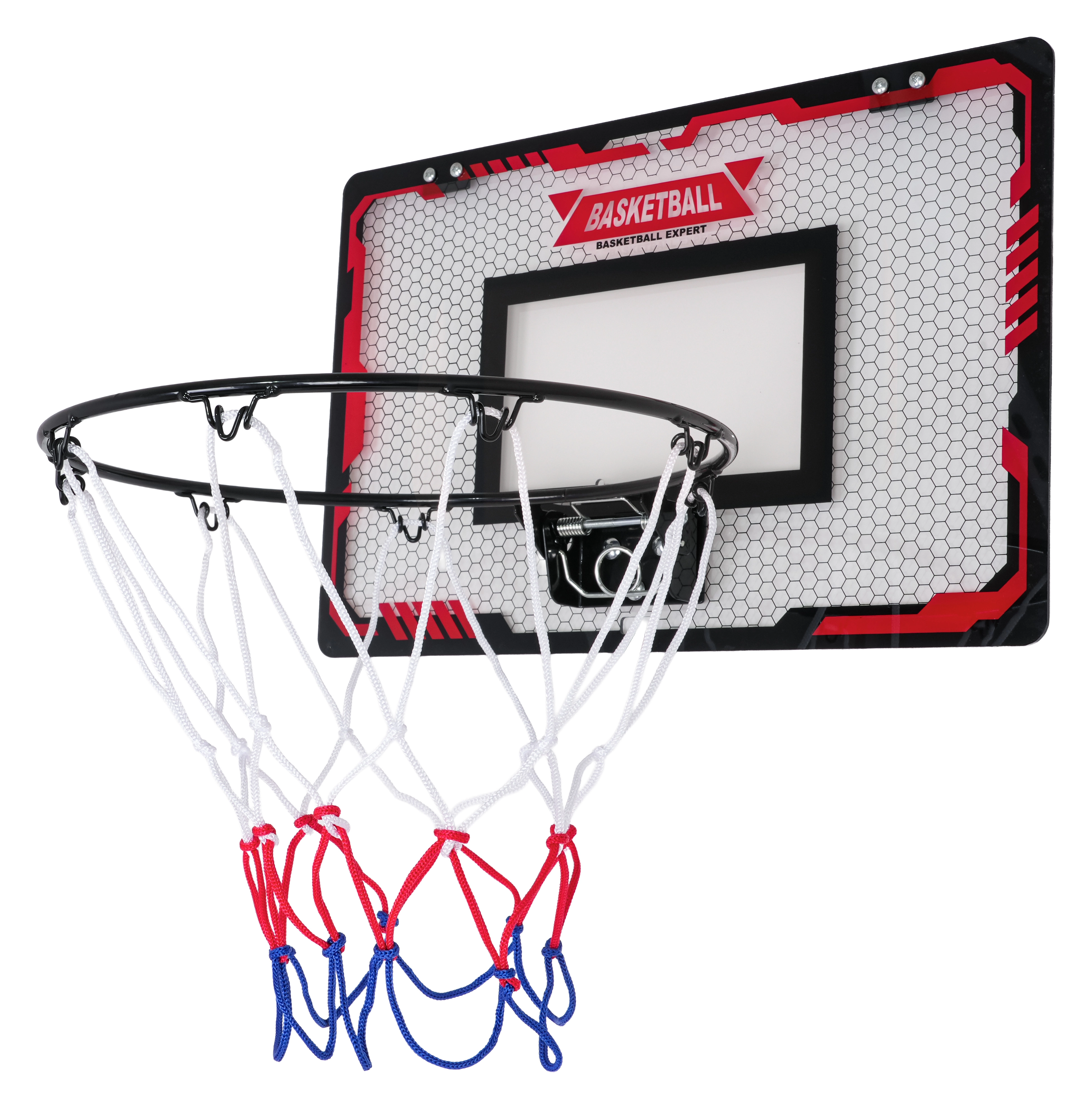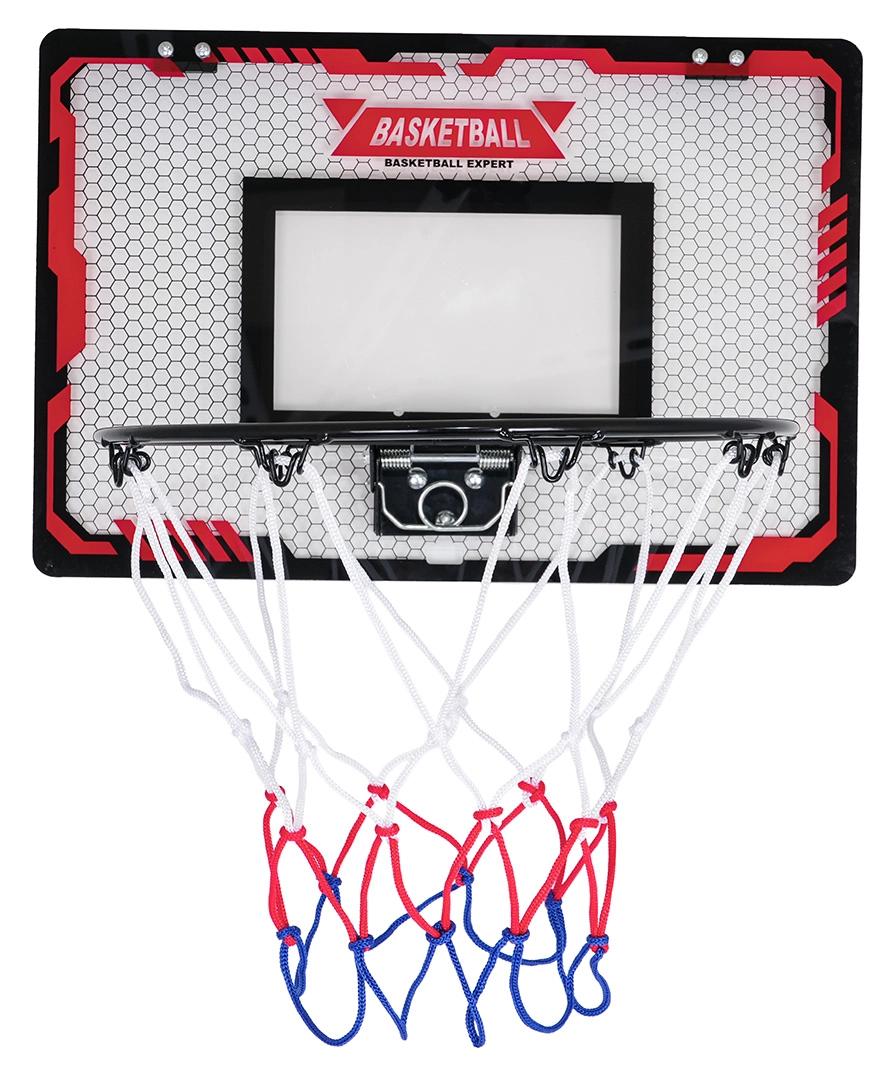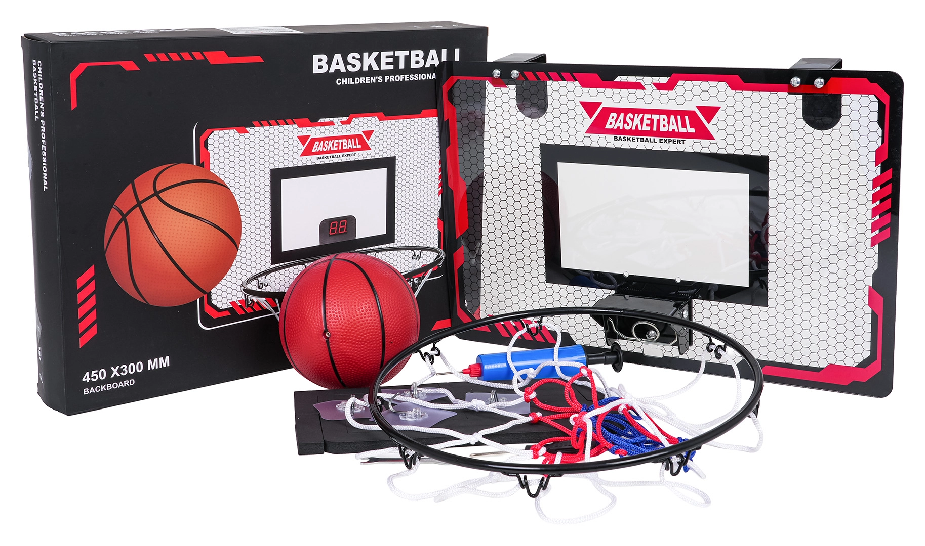 Sættet indeholder alt til øjeblikkelig leg: solid plasttavle, metalring med net, gummibold, pumpe med nål og komplet monteringssæt inkl. skruetrækker og nøgle. Ideelt til børneværelset, gangen eller legerummet – understøtter hånd–øje-koordination, præcision og konkurrence.