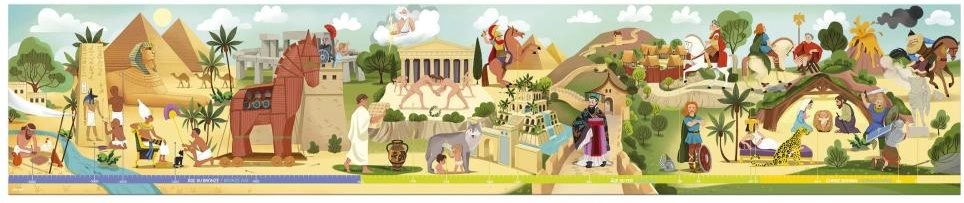 Dette panoramapuslespil tager både børn og voksne med ind i en fascinerende verden af helte og guder. Takket være den praktiske kuffert er det nemt at transportere, så du kan nyde underholdningen derhjemme, på ferie eller på besøg hos venner. Plakat-skabelonen hjælper med orienteringen og øger glæden ved det færdige billede.