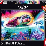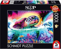 Oplev det unikke motiv af en neon-skildpadde, som træder frem med stærke farver og fine detaljer. SCHMIDT-puslespil er populære for deres præcise stansning, holdbare brikker og behagelige overflade, hvilket gør, at brikkerne passer nøjagtigt sammen, og lægningen er flydende og sjov.