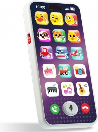 Farverig interaktiv telefon til de mindste, der efterligner en rigtig smartphone og byder på masser af leg og læring. Takket være de store ikoner lærer barnet tal, dyre- og trafiklyde og lytter til melodier. Legetøjet har et let og fladt design, ligger godt i små hænder og har lydstyrkeregulering til behagelig leg derhjemme og på farten.