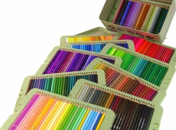 Opdag uendelige muligheder for kreativitet med et sæt til både små og store kunstnere: 300 farveblyanter overskueligt opbevaret i en metallisk organizer med ti niveauer. Hver blyant har navn, nummer og lysægthedsindikator for nem orientering. Der medfølger også et farvekort til udfyldning efter din inspiration. Sikkerhedsgodkendt produkt med CE og standarden EN71, velegnet til børn fra 3 år.
