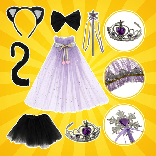 - Tyl (tutu) nederdel, kappe, krone, tryllestav, hårbøjle med katteører, hale, butterfly